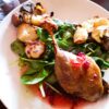 I don’t recall the exact ingredients and methods from the magazine, but here is how the dish comes together for me: cut boneless chicken thighs into bite-sized pieces; cut onions and your choice of peppers into similar-sized pieces; toss the mixture in salt and pepper, olive oil and seasonings like cumin, coriander, perhaps paprika, and any other spices that inspire a sort of shawarma/kebab taste profile for you.