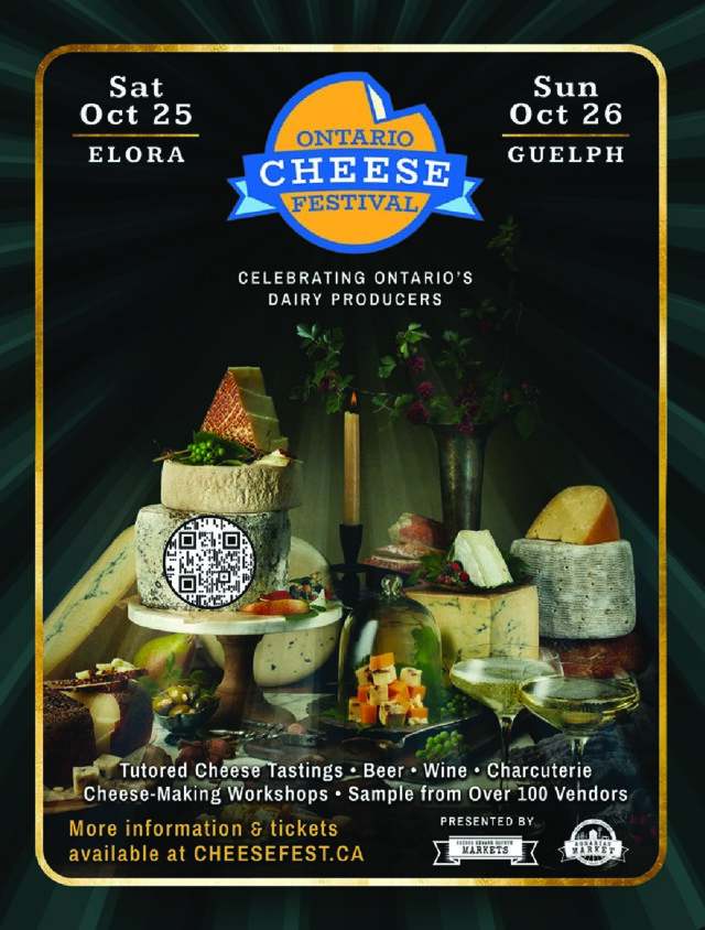 Prince Edward County Markets is pleased to announce that October 25 is the date for second annual Ontario Cheese Festival in Elora. The Guelph date has already been sold out.